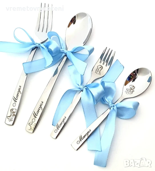 Прибори за #хранене от #стомана висок клас с #гравиран #анимационен #герой по избор възможна е изработка и с #лика #портрет на вашето #дете