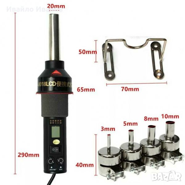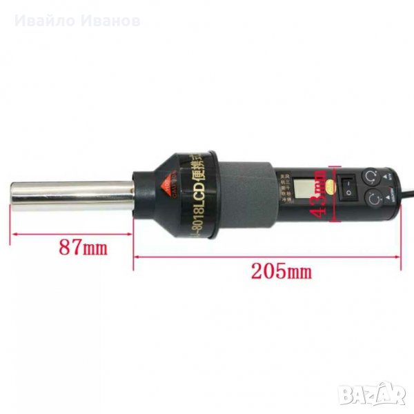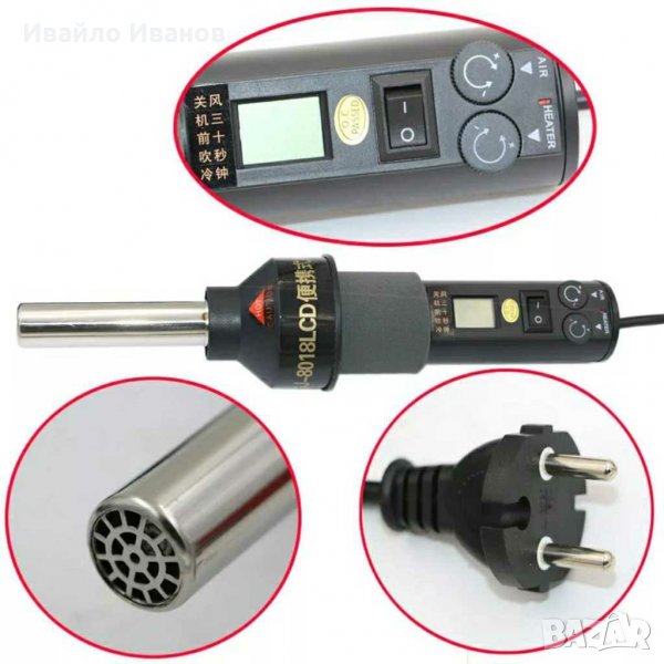 Духалка за разпояване и запояване на smd елементи, възможност за коригиране на температурата и силата на въздуха. Дигитален термометър, ключ , 4бр.накрайници,поставка.