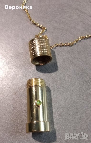 2. (Снимки 6-11) Позлатено синджирче с цилиндрична кутийка с капаче. Може да се съхранява нещо малко за спомен вътре. Има леки следи от употреба. Размери: дължина на верижката 60см, кутийка 3см - 3 лв
