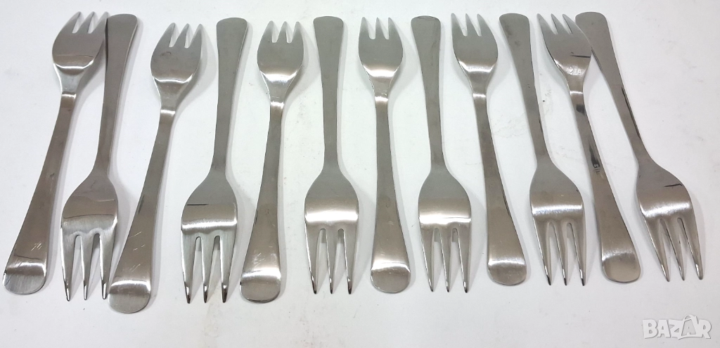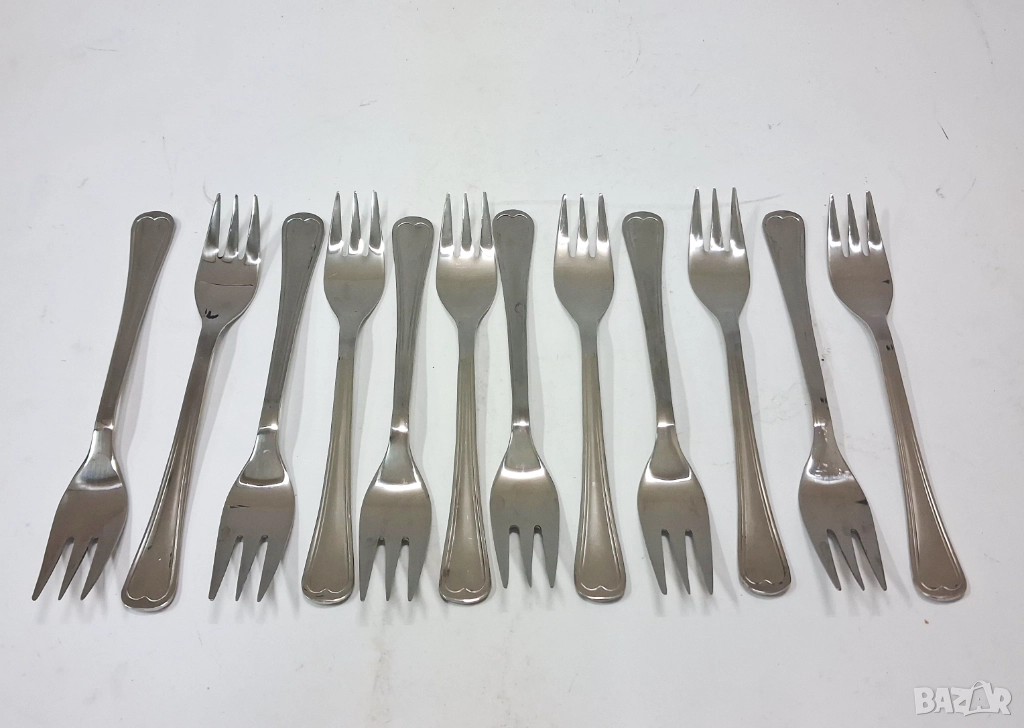 Малки вилички за предястие/десерт, изработени от неръждаема стомана.