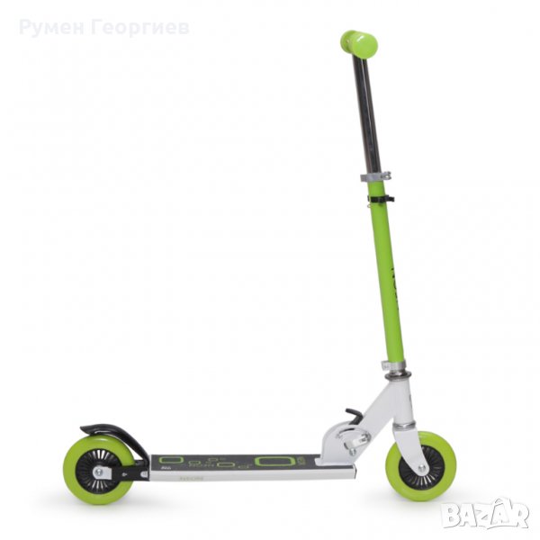 Сгъваема детска тротинетка със странична стойка и регулируема височина на кормилото. Подходяща за деца на възраст над 3 години