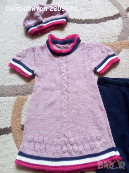 Красива плетена туника със шапчица баретка и клинче към нея.Без забележки за възраст 2-2,5г до към 4г туниката може да се носи.