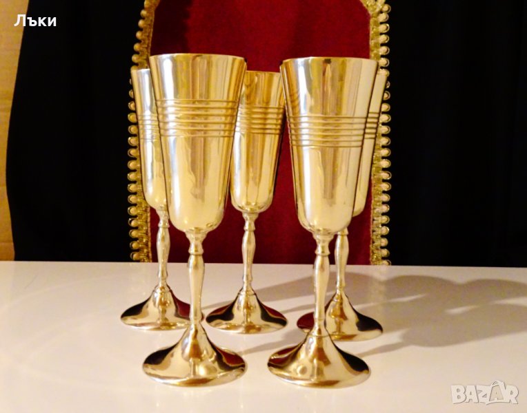 с класически дизайн и нежен релеф.Ослепителен златен блясък,кристална гладкост и празничен звън.Височина 17 см.,диаметър 6 см.,тегло на всеки 180 гр.Вместимост 150 мл.