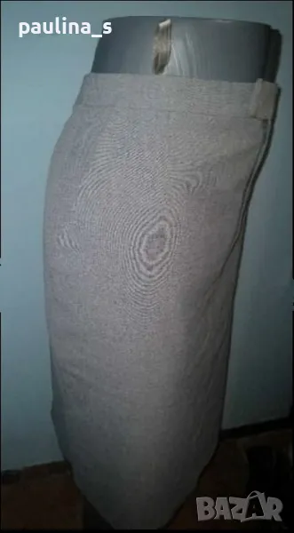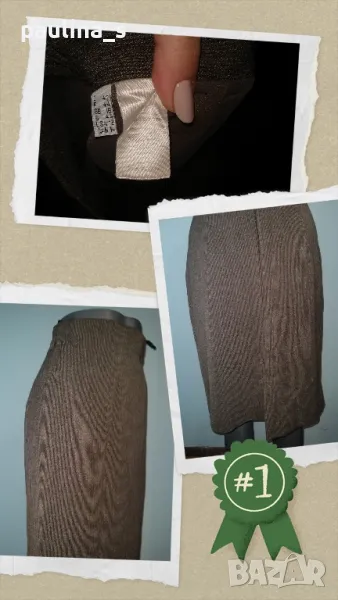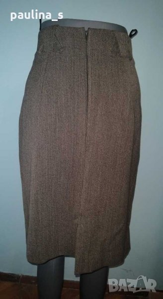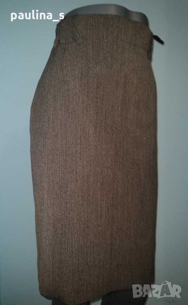 1. Колаж / M / L - Еластична брандова пола с хастар и висока талия. Цената е крайна 12,99лв. Цветът е кафяво райе, покрива няколко размера и дрескода за офис или повод. Без дефекти, една бройка, аутлет.