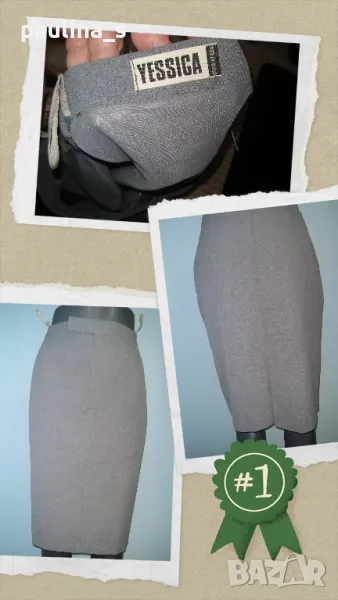 2. Колаж / M / L - "Yessica" by C&A. Цената е крайна 9,99лв. Официална пола с хастар и джобове. Официална пола с хастар и джобове. Материята е фин габардин, със съдържание на вълна. Моделът е обран и покрива няколко номера и дрескода за офис или повод. Прихлупващ колан, коси джобове, филетки отзад.