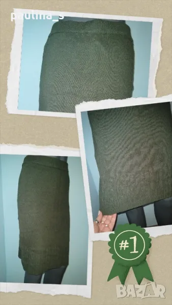 1️⃣. Колаж / M / 2XL - "Autumn 1989 girls Heaven", миди модел. Цената е крайна, без пазарлъци 29,99лв / 15 евро. Зелена пола от кашмир, вълна и примеси с плетеници за декорация. Цветът е Зелена маслина. Без дефекти!
