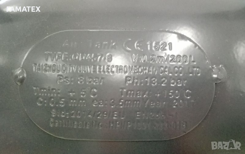 Танк за въздух от висококачествена стомана, сертифициран за високо налягане.