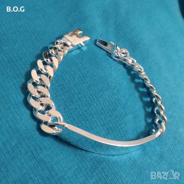 Нова, сребърна масивна гривна с плочка. В подарчна кутия. → Обява 31158210