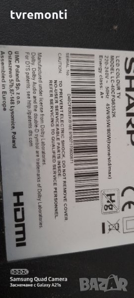 Демонтиран от телевизор SHARP LC-40FG6352K със счупен дисплей.LSC400HN02 тесвана от нашия техник