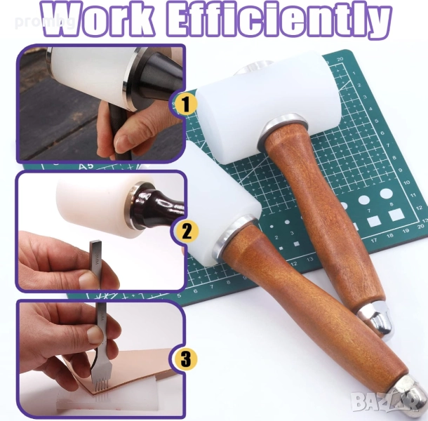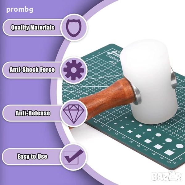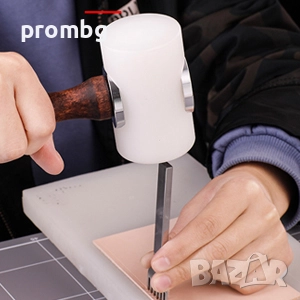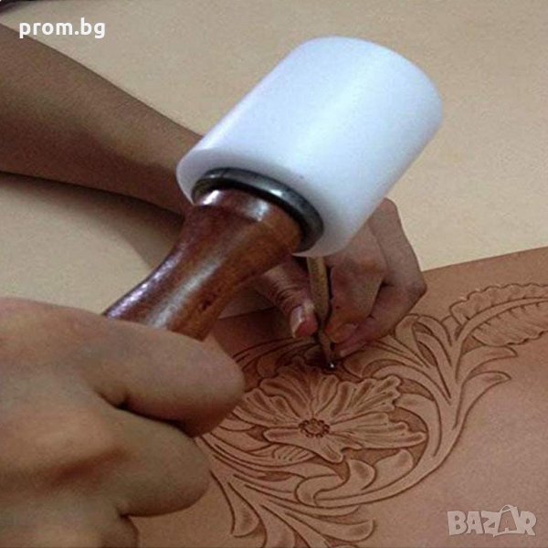 кожарски, сарашки чук от тефлон и дърво, 2 модела. С помощта на чука отпечатате различни фигури върху кожените изделия. Подходящ за работа с щампи и