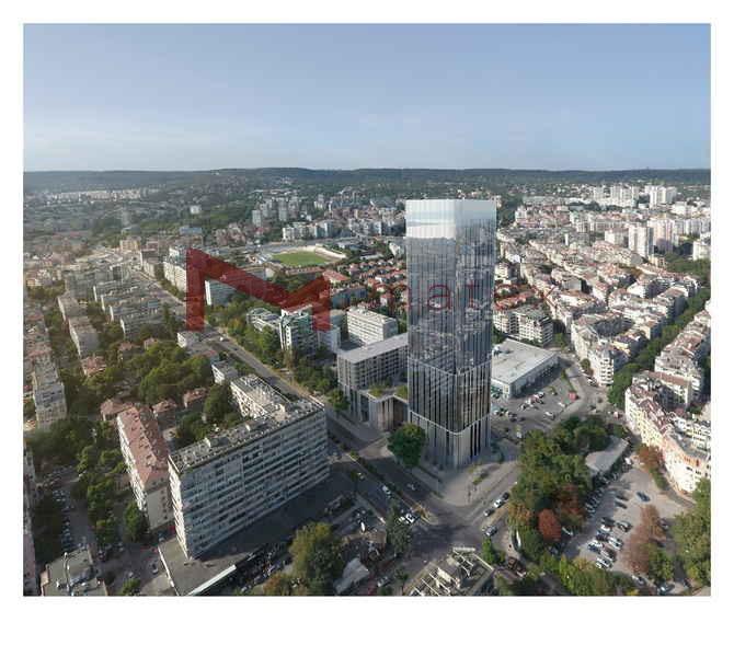 ИНВЕСТИРАЙТЕ!!! Уникалността на сградата, съчетана с атрактивната локация ви гарантират огромен интерес и нестихващ поток от страна на наематели! Модерният комплекс ще разполага с : жилищни, офис и търговска площи, хотел, кафе и ресторант, зелени площи, банкови офиси, здравни услуги, зони за спорт и развлечение, супермаркет, паркинги и др. Стратегическата локация на сградата Ви осигурява отлична транспортна достъпност до всяка една точка на града.