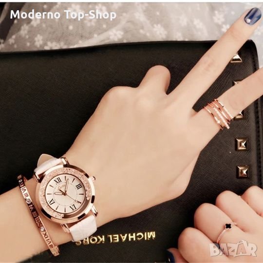 Красив дамски кварцов часовник с кристали-кожена верижка. → Обява 31163052