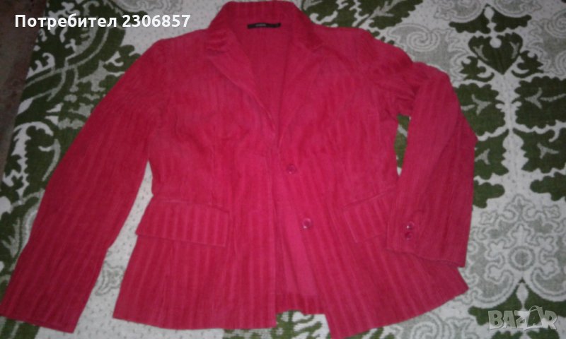 Красиво вталено сако в червено. Цветът не е твърде ярък, личи най-точно на тъмната снимка. Запазено без никакви забележки.
