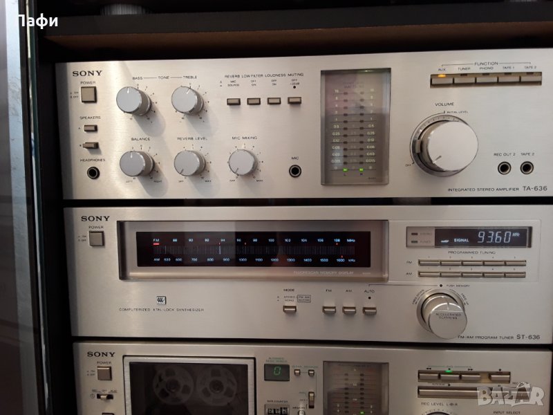 Система Sony Studio 7080, която включва: таймер PT 79 R, дек TC U 60, тунер ST 636, усилвател TA 636, грамофон PS 636, дистанционно RM 79, компакт диск cdp 597. Налични са книжки за компонентите, както и оригиналния капак на грамофона, който е в перфектно състояние. Преглед и тест, както и предаване само на място в гр. Стара Загора. Цената е за комплекта .