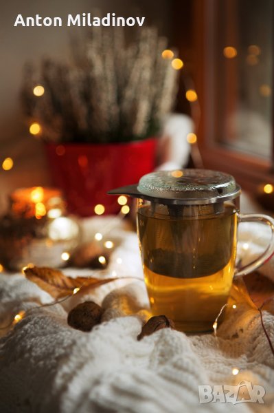 Чаша 350 ml. в комплект със стъклен капак и цедка за чай. Диаметър в най - високата и част - 80 mm. Стъклото не съдържа кадмий и олово.