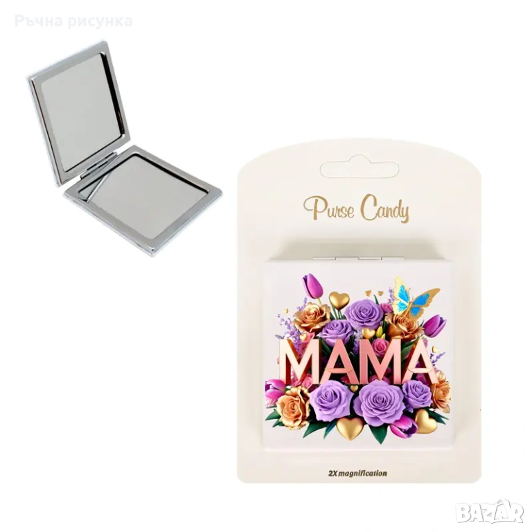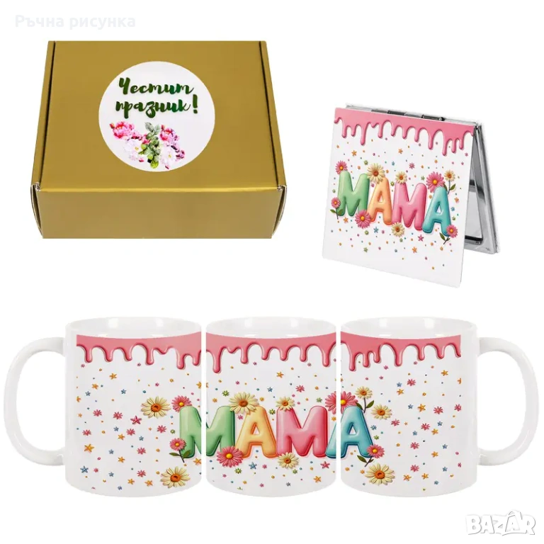 Шестнадесета снимка-Подаръчен комплект "Мама" /чаша и сгъваемо джобно огледало/.