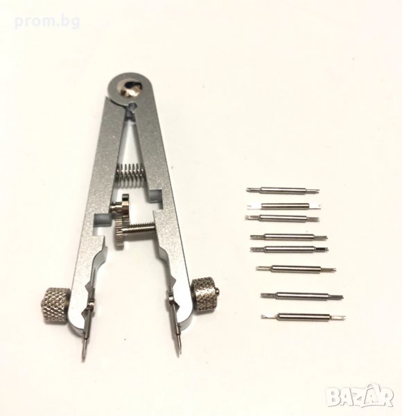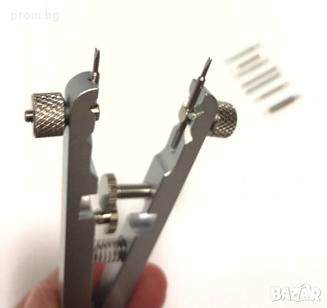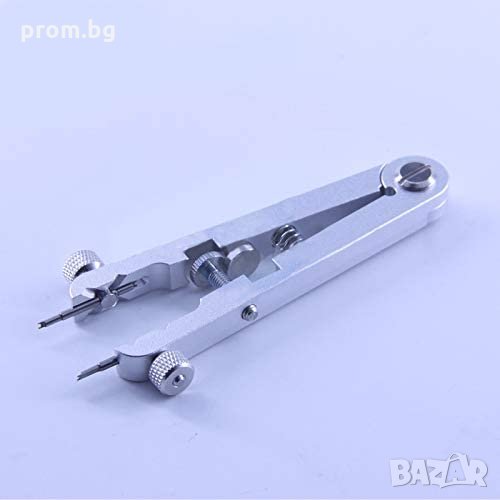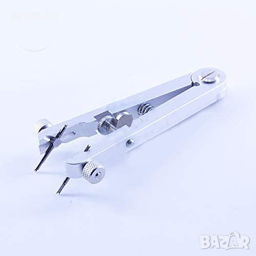 Часовникарски инструмент за монтаж и демонтаж на патент на часовник. Използвайте този инструмент, за да демонтирате и поставите точните пружинни щифтове(колчета) на вашия часовник. Подходящ за премахване и регулиране на каишки за часовници, пружини и щифтове на часовници, за лесно регулиране и ремонт на гривни и др. Инструментът съдържа 4 комплекта универсални сменяеми накрайника - вилици. Разкрач от 6 мм до 30 мм. Подходящ за повечето марки часовници на пазара. Материал: алуминиева сплав. Дължина: 10 см. Накрайници / вилици: 1,0 мм; 1,2 мм, 1,4 мм и 1,6 мм.