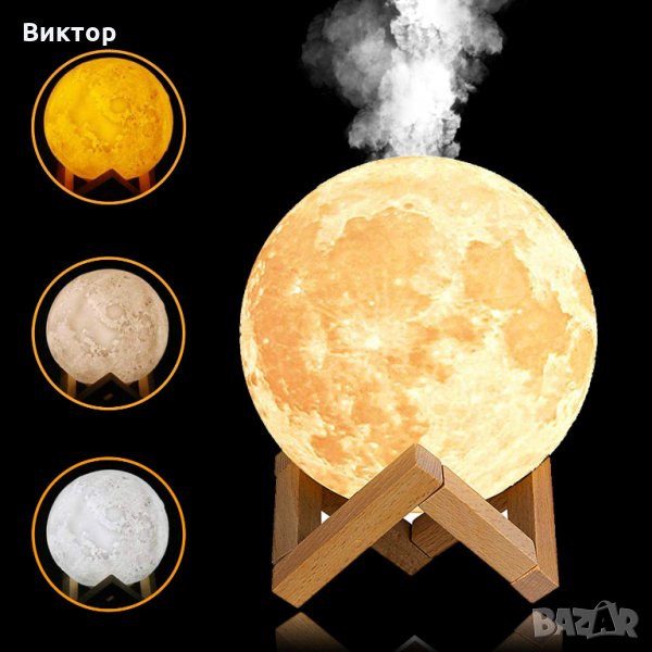 КОНТРОЛ чрез ДОКОСВАНЕ --- 3D ЛУННА ЛАМПА с тиха функция на овлажнител. Touch Night Light с три цвета на осветение - бяло - жълто - топло бяло.