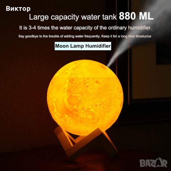 ЛУННА ЛАМПА С ОВЛАЖИТЕЛ - Овлажнител с 880мл резервоар за вода с голям капацитет, за да може да работи през цялата нощ и ефективно да подобрява влажността на въздуха. С кабел за за работа на овлажнителя