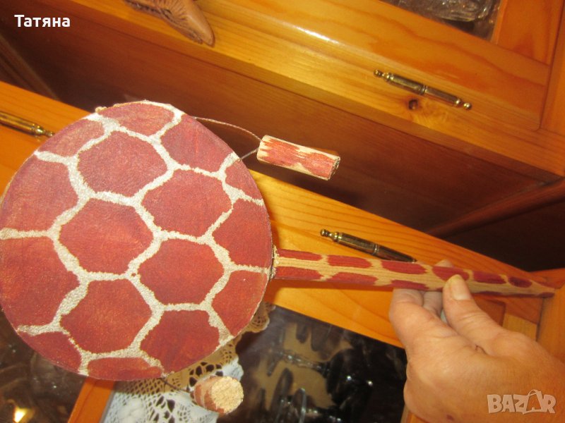 СНИМКА -10; ТЪПАНЧЕ от животинска кожа /издава интересен и мелодичен звук,когато дърветата отстрани ,при въртене се удрят в тъпанчето/ -20 €