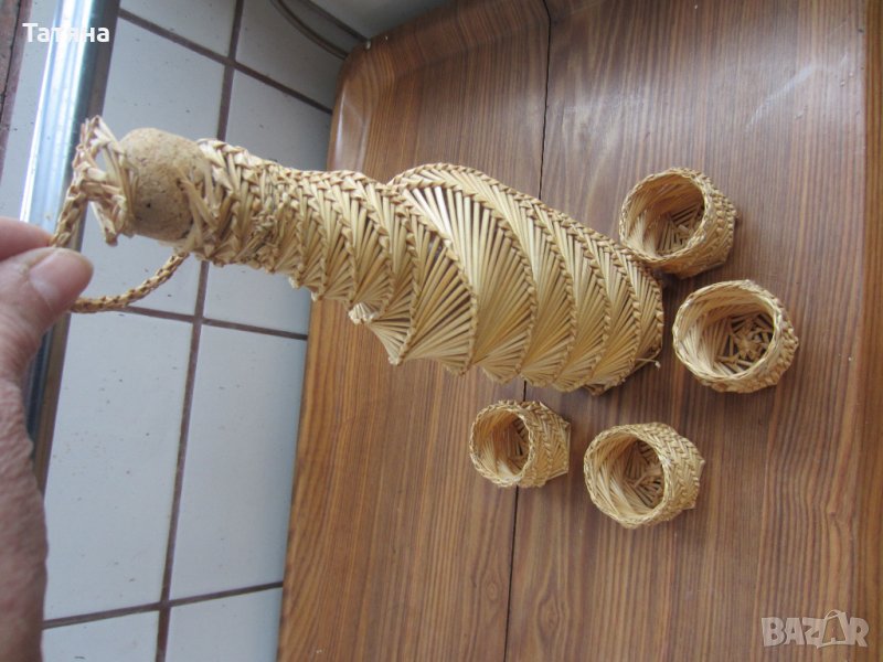 СНИМКА 13 ;Плетено шише и 4 плетени чаши -15 €;В чашите могат да се поставят стъклени чаши и да се ползват по предназначение. -