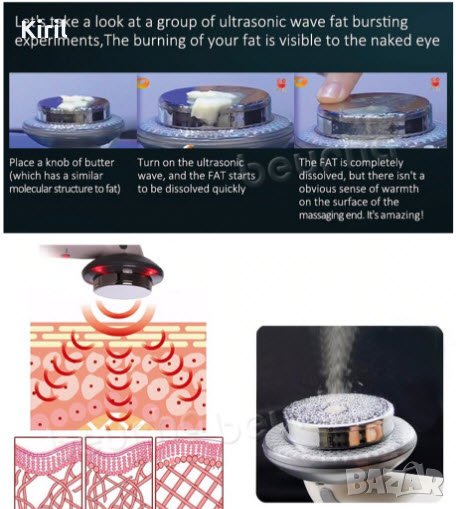 Ултразвуковият масаж разгражда мастните натрупвания и повишава пропускливостта на епидермиса. Подпомага абсорбирането на продуктите за кожа, ускорява метаболизма и засилва регенеративния ход на тъкан