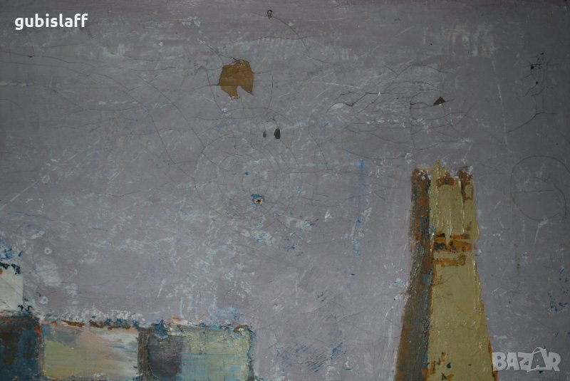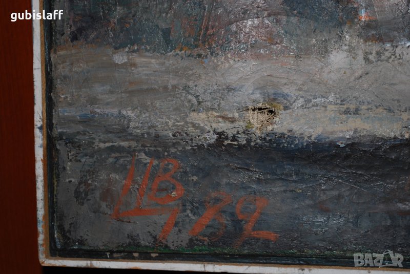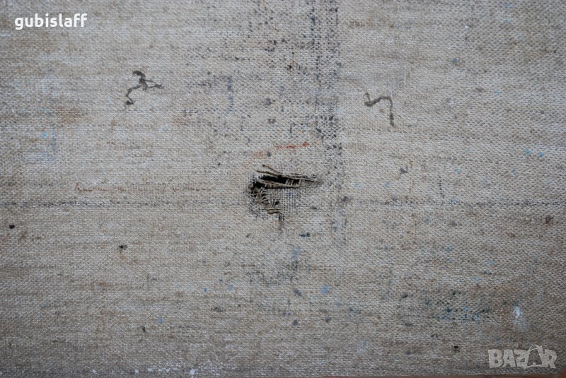 Има няколко участъка с напукана боя, както и скъсано на едно място-над подписа, около 3 см., лесно могат да се поправят.