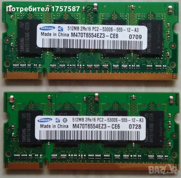 РАМ Памет за лаптоп SODIM RAM Memory 512MB DDR2, снимка 1 - RAM памет - 31180995 РАМ Памет за лаптоп SODIM RAM Memory 512MB DDR2, снимка 2 - RAM памет - 31180995 1/2