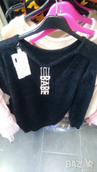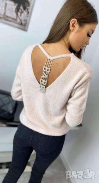 Блуза от мохер с ефектен гръб от камъни в черен и бял цвят → Обява 31181346