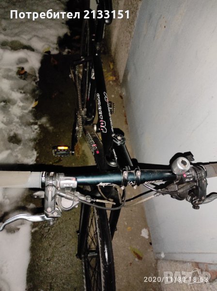 Велосипедът е в перфектно физическо и визуално състояние. Характеристики: Алуминиева рамка,капли-26ц.,скоростна с-ма Schimano SLX,спир. с-ма Schimano DEORE, корм. лапа и колче- SMICA,гуми Schwalbe. Хоризонтал на рамката - 0.56 см., вертикал - 0.50 см.Теглото на велосипеда е 11,5 кг.