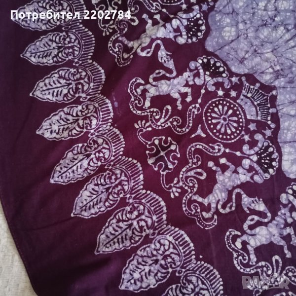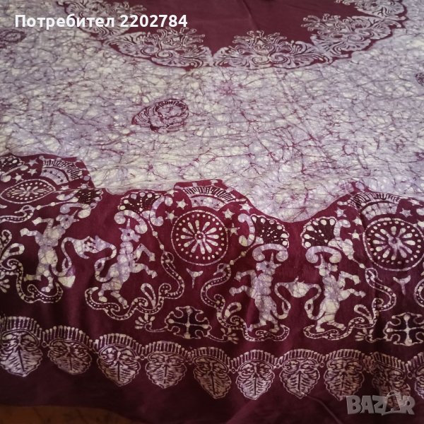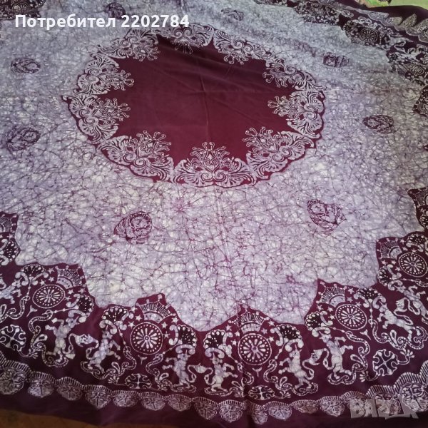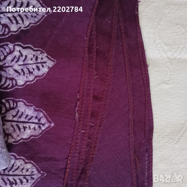 Третата е прекрасна памучна индийска покривка.Наситен лилав цвят.Неизползвана.Тъй като подгъва е много тънък от някъде стърчат кончета.