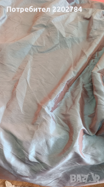 Последната е огромна покривка от плътна органза хамелеон.Диаметъра е 280см,2метра и 80см.Преливащ синьосив цвят с виолетови оттенъци.