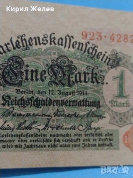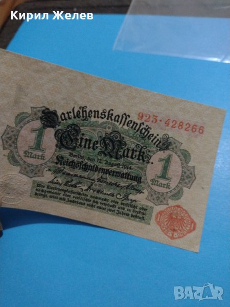 Рядка банкнота една марка 1914 година Германия с червен печат за колекция - 18857 → Обява 31186574