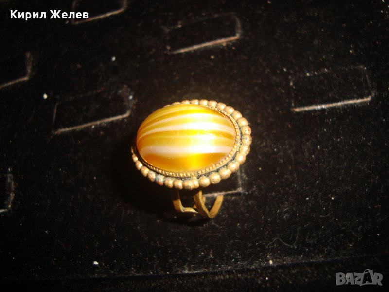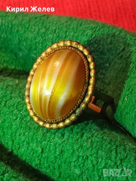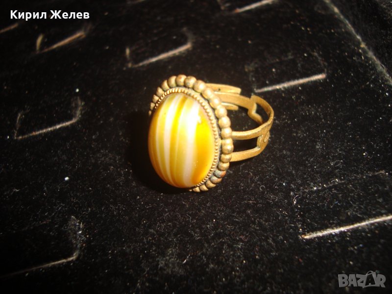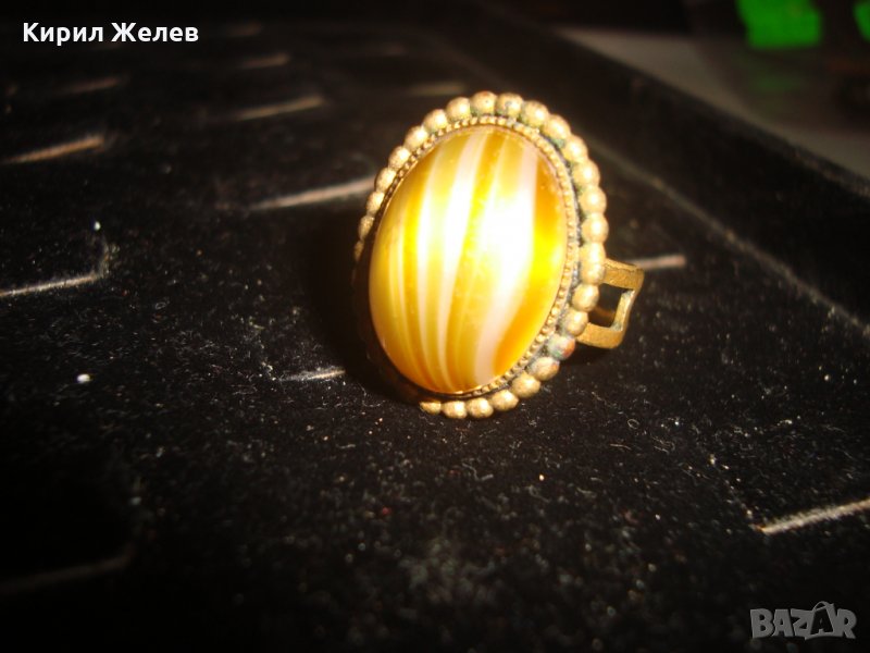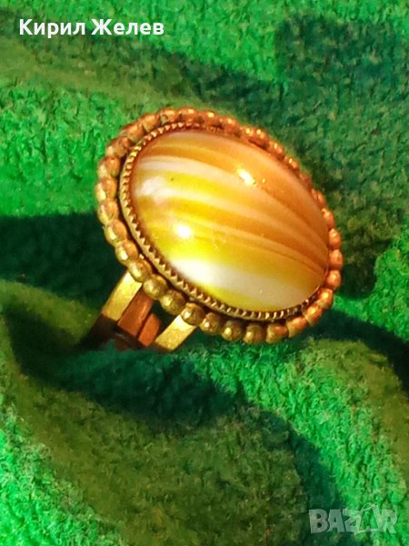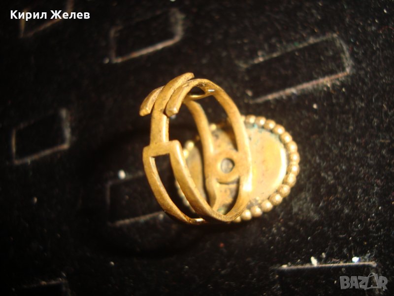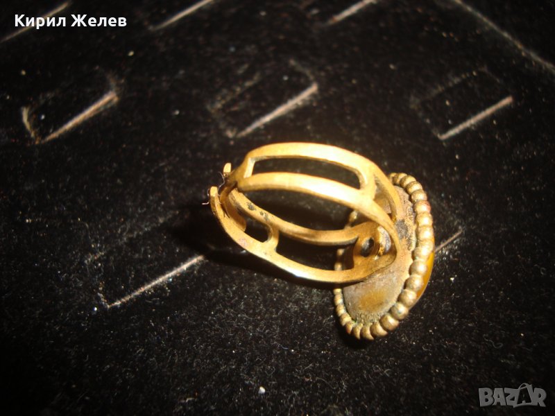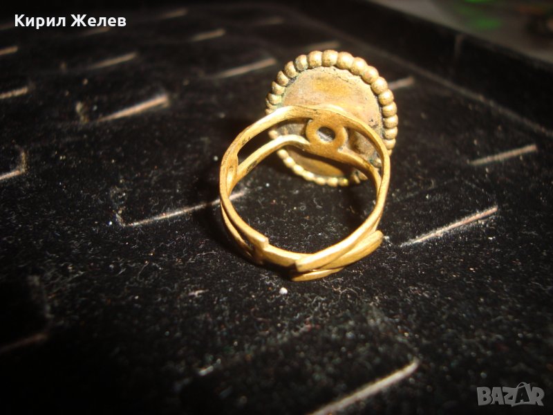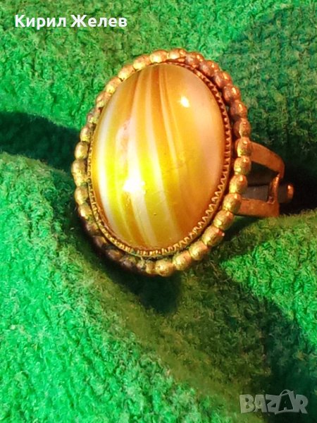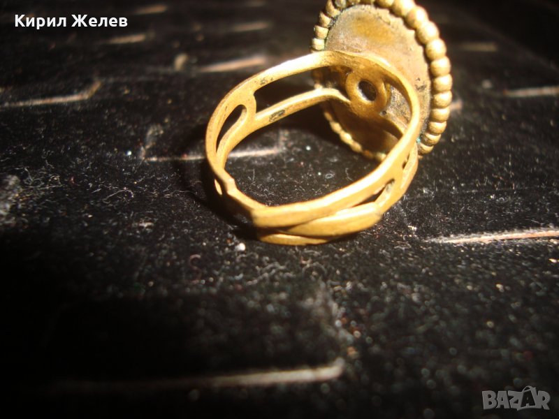 АР НУВО МАЙСТОРСКИ ПОЗЛАТЕН РЕГУЛИРУЕМ ПРЪСТЕН с ГОЛЯМ СКЪП ИВИЧЕСТ ЯСПИС РЕТРО АРТ БИЖУ 17463