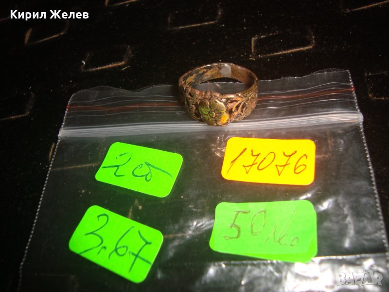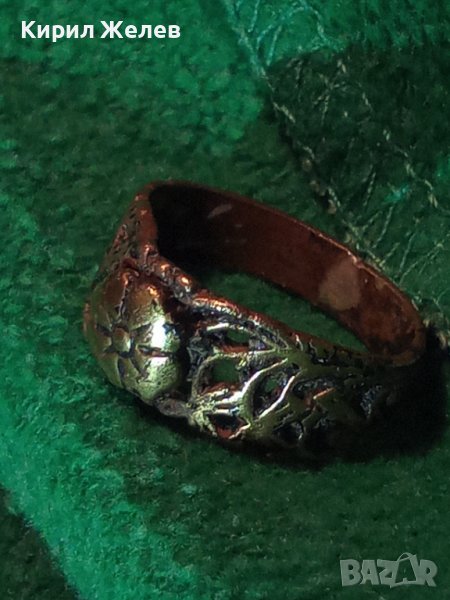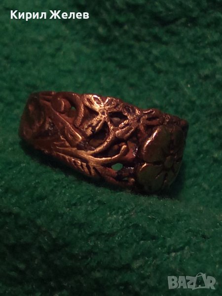 СТАРИНЕН ФЛОРАЛЕН ПОЗЛАТЕН СРЕБЪРЕН МАЙСТОРСКИ РЪЧНО РАБОТЕН ПРЪСТЕН АРТ-ДЕКО УНИКАТ 17076