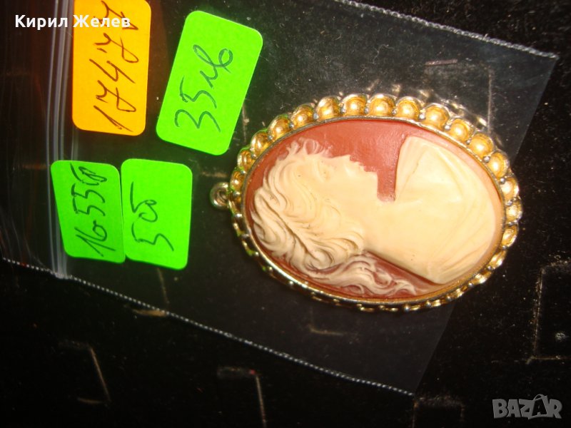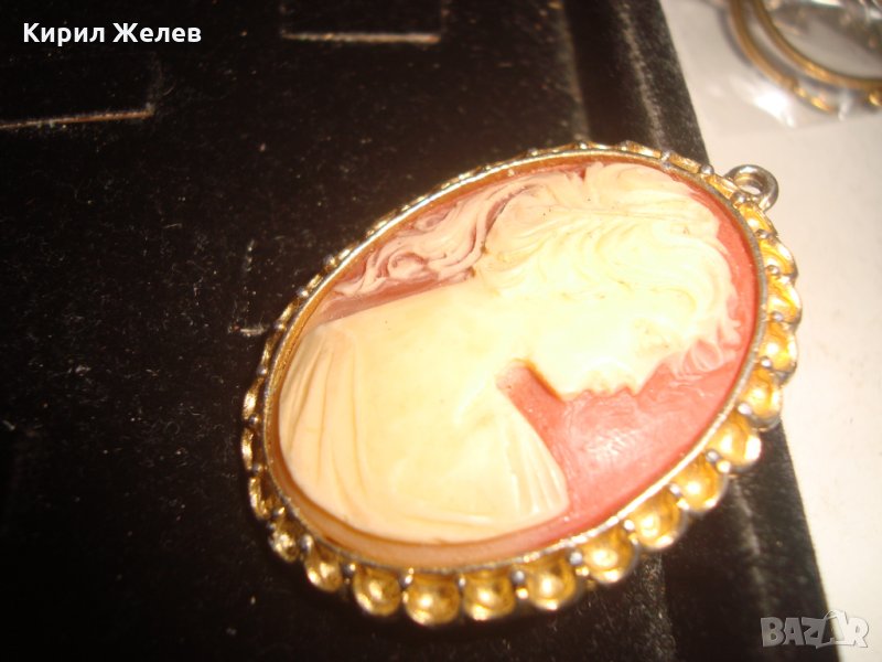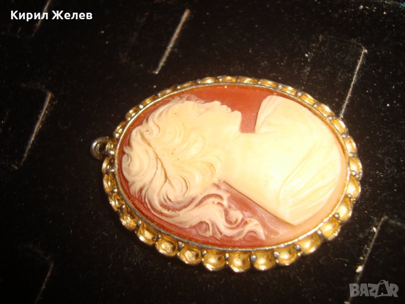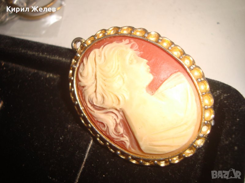 ВИНТИДЖ ВИКТОРИАНСКА КАМЕЯ ПРЕКРАСНА БРОНЗОВА ПОЗЛАТЕНА СТАР ПЕНДАНТ АРТ ДЕКО 17477