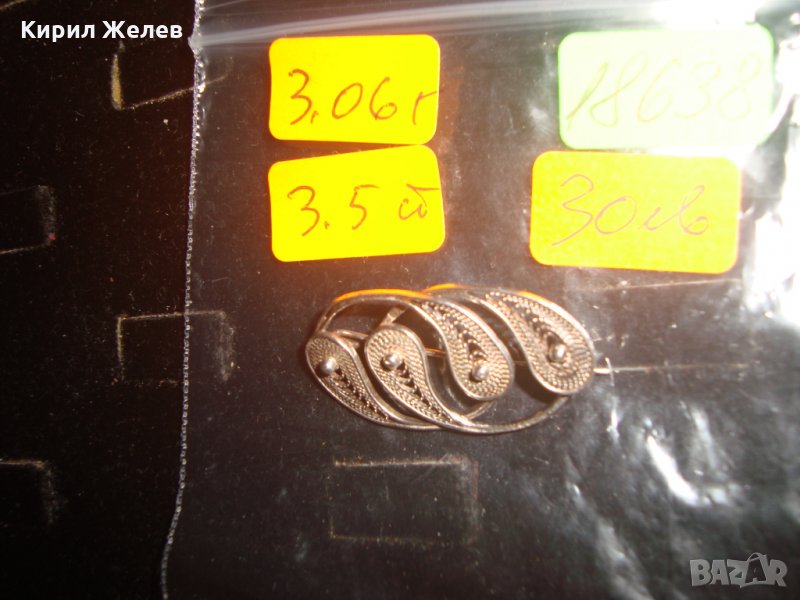 СРЕБЪРНА РЕТРО АРТ-ДЕКО ФИЛИГРАННА БРОШКА с ГРАНУЛАЦИЯ 18638