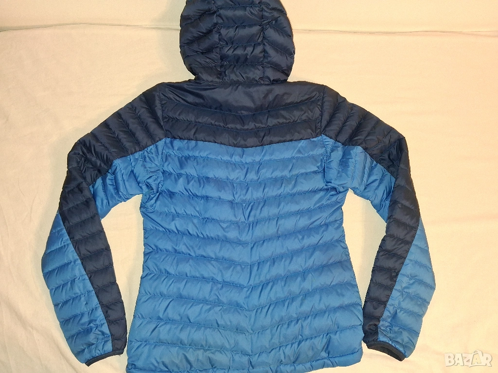 Размер по етикет - (XS).Със задължителната за яке от този клас "box" конструкция, така че да не се размества вътрешната изолация, права кройка, издължен гръб, висока яка и стегната качулка пухеното яке Slingsbytind може да бъде носено като втори (междинен) или последен (външен) слой. Предлага шнурове за пристягане с една ръка на яката и в долната част на якето, както и еластични маншети на ръкавите. Джобовете са четири - два, страничнo разположени, така че да не пречат при използване с обезопасителен колан (сбруя), джоб при гърдите и вътрешен джоб, който освен всичко друго служи и за компресионен калъф на якето.Състав - 90 % пух и 10% пера със сила на запълване (бухване) от 700 cuin.