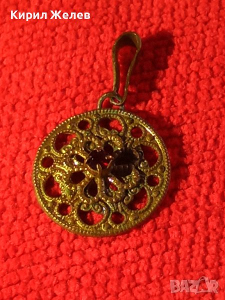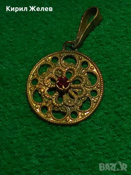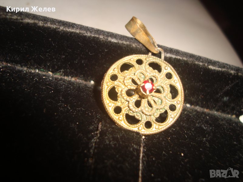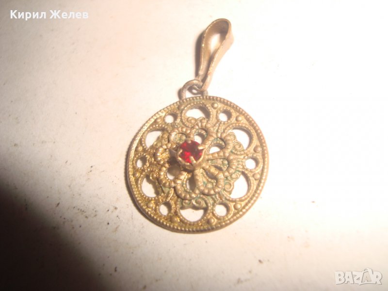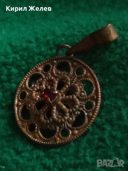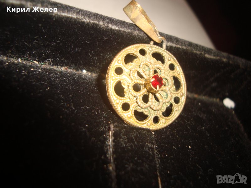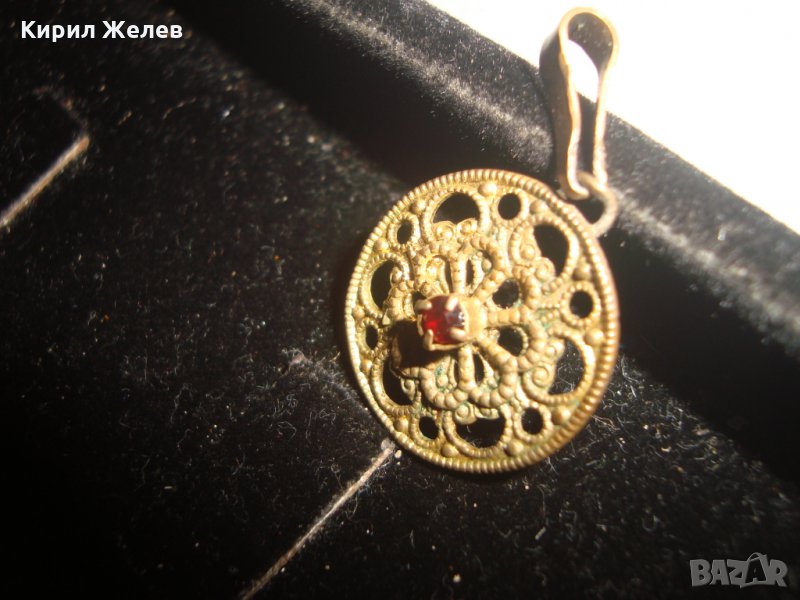 ПОЗЛАТЕН СТАРИНЕН МЕДАЛЬОН с ФАСЕТИРАН РУБИН РЪЧНА КУЮМДЖИЙСКА ФИЛИГРАННА ИЗРАБОТКА 17466