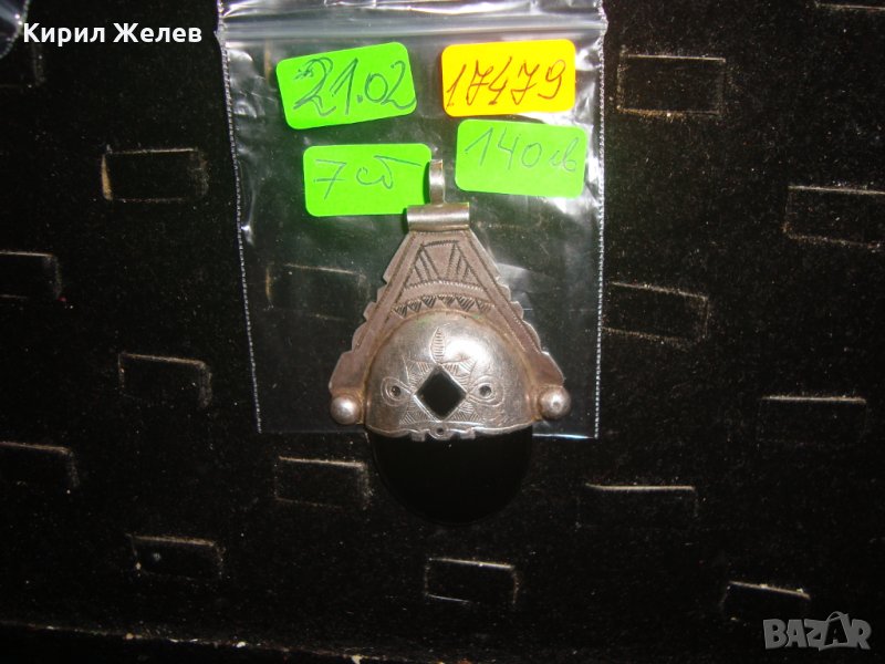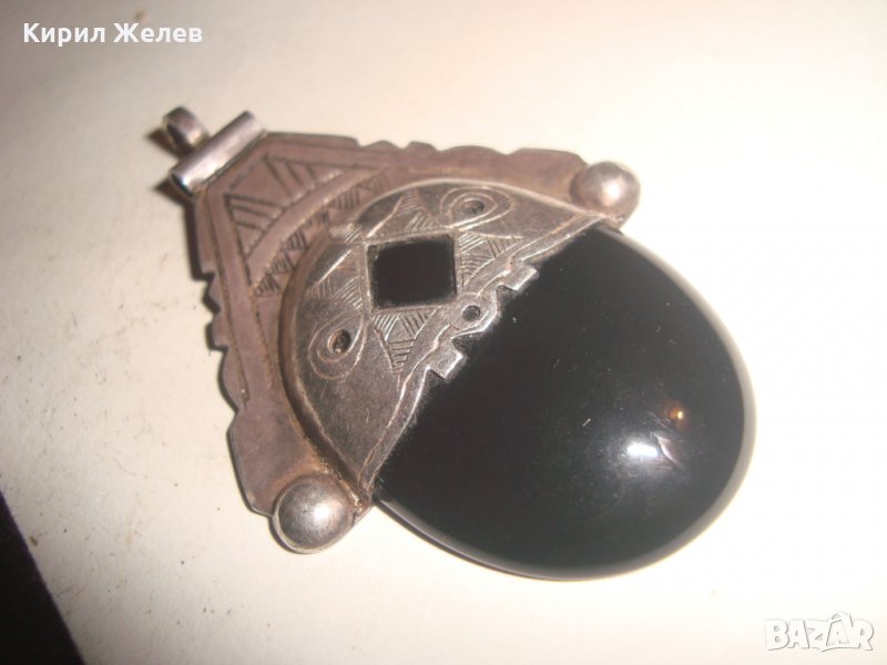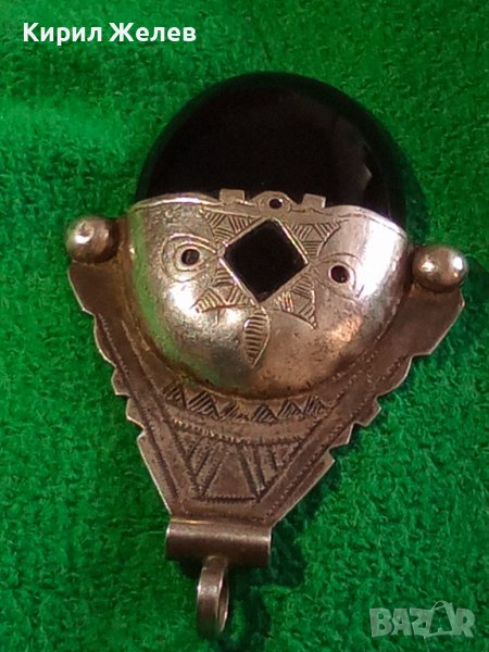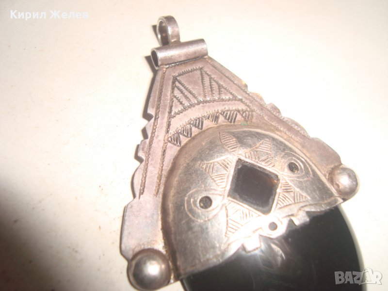 ЕТИОПСКИ СРЕБЪРЕН МЕДАЛЬОН АМУЛЕТ с ЧЕРЕН ОНИКС РЪЧНО с КАЛЕМ ОРНАМЕНТИРАН АБСОЛЮТЕН УНИКАТ 17479