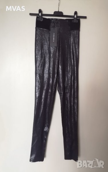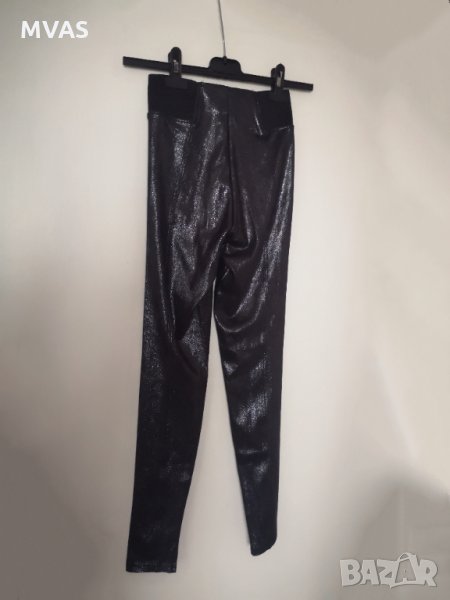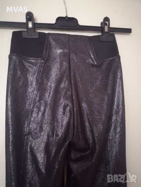 Цвят графитено тъмно сив,с блясък, като промазан седи, широк ластик в кръста вталяващ, много ефектен, много мек на допир като кадифен, не е тънък, не е за спорт, а за навън облекло