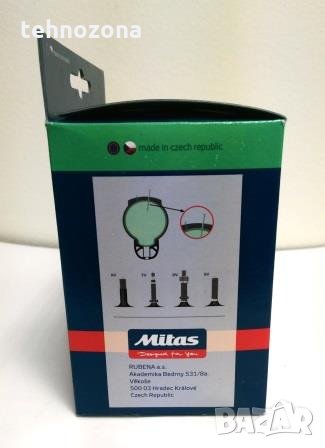 Всяка гума е в самостоятелна кутия с обозначения размер и описание, което гарантира качеството на марката – Mitas, Чехия.