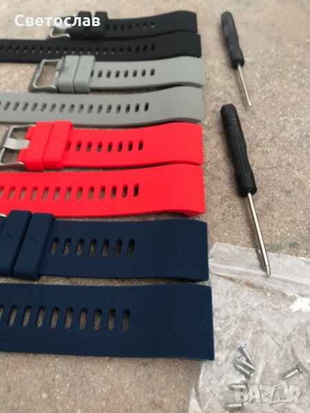 Чисто нови силиконови каишки за Garmin Forerunner 35. Към каишката има комплект отвертки и болтчета за монтаж и демонтаж.