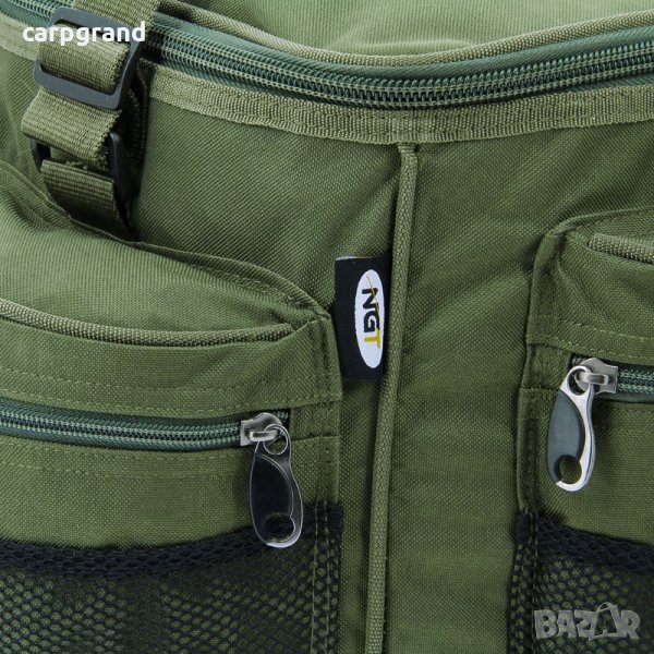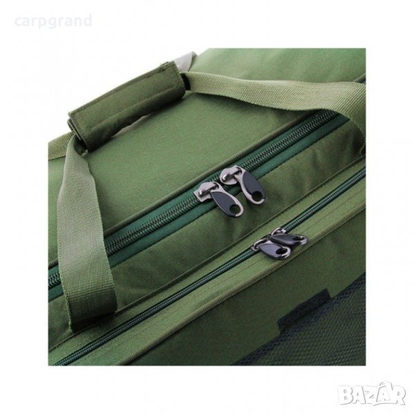 Гигантска маслинено зелен сак за носене с изолирано основно отделение и три външни джоба с цип за съхранение на множество предмети. Подплатените дръжки и подплатената регулируема презрамка са включени стандартно и са изработени от водоустойчив 600D полиестер с подплата 210D.