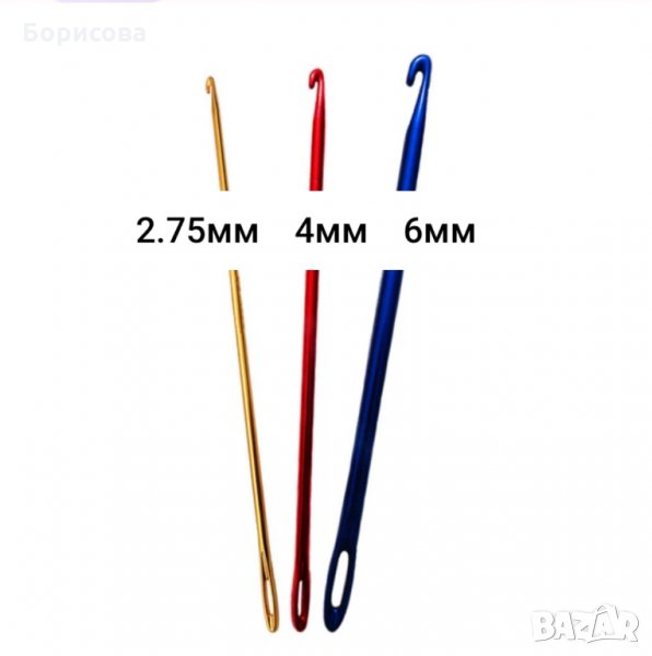3бр комбинирани куки за плетене ( нукинг). Размер : 2 75мм, 4мм, 6мм.