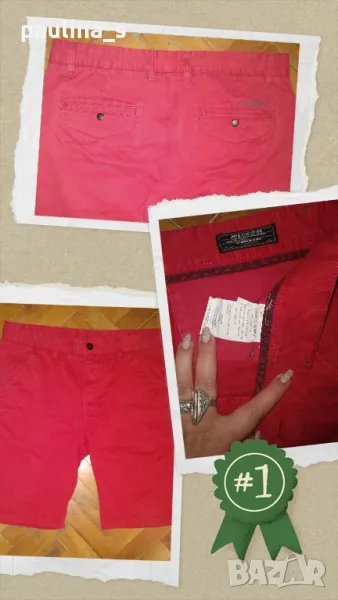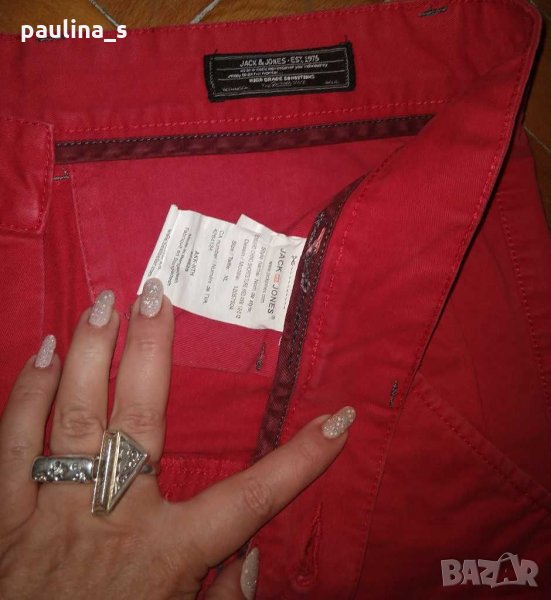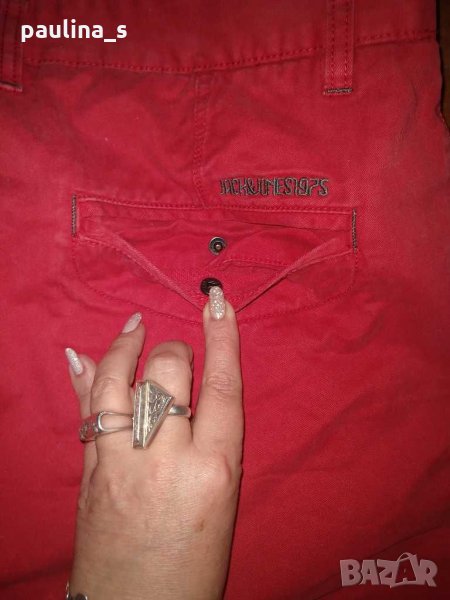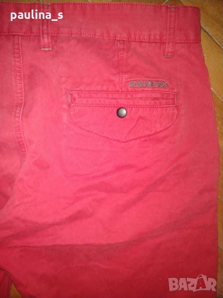 1. Колаж / L / XL - "Jack & Jones". Цената е крайна 34,99лв. Червени дънкови бермуди с шпиц джобове. Закопчаването е с копчета, има бродирано лого. Цветът е ярко червен, много прецизна изработка, в отлично състояние. Нямат еластичност, като нови, без дефекти и етикет.