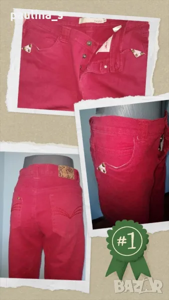 3. Колаж / M / 2XL - "Oktan" Малинено червени дънкови бермуди. Цената е крайна 34,99лв. Еластични дънки, унисекс. Моделът е с прави крачоли и джобове с брандирани кабси. Цветът е малинено червен, платът е много еластичен и плътен, покрива няколко размера. Може да се носят и от двата пола. Хипер атрактивен стайлинг. Без дефекти и етикет, като нови.