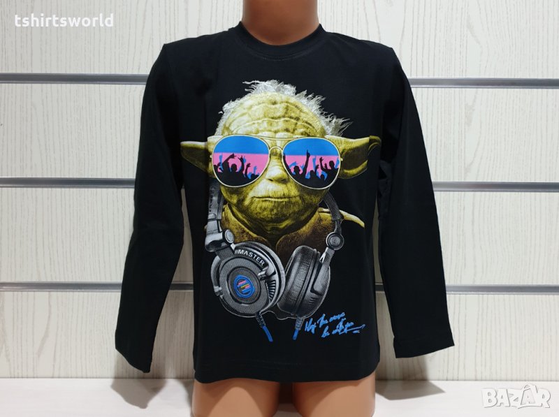 Страхотна нова черна детска блуза с дълъг ръкав с професионално изработен трансферен печат на героя от Междузвездни войни, Йода, устойчив на пране с години. Блузата е изработена в България под марката PRINTEX от висококачествен 100% пениран памук, който запазва цялостта на материята и наситеността на цветовете на черното трико дълго време. Тениската може да се пере при температура до 40 градуса. Спокойно можем да гарантираме за качеството на изработката и ярките цветове на дизайна.