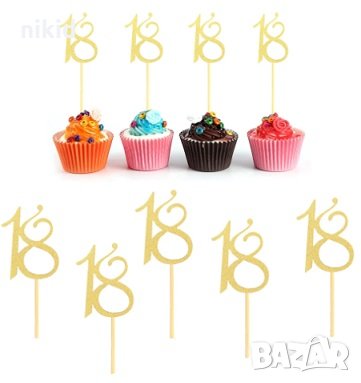18 години заоблен малък златист брокатен топер украса декор за торта мъфини рожден ден → Обява 31212299