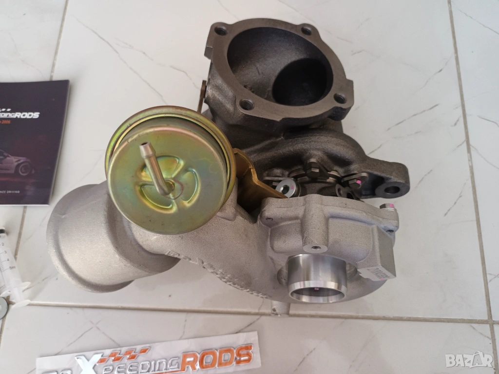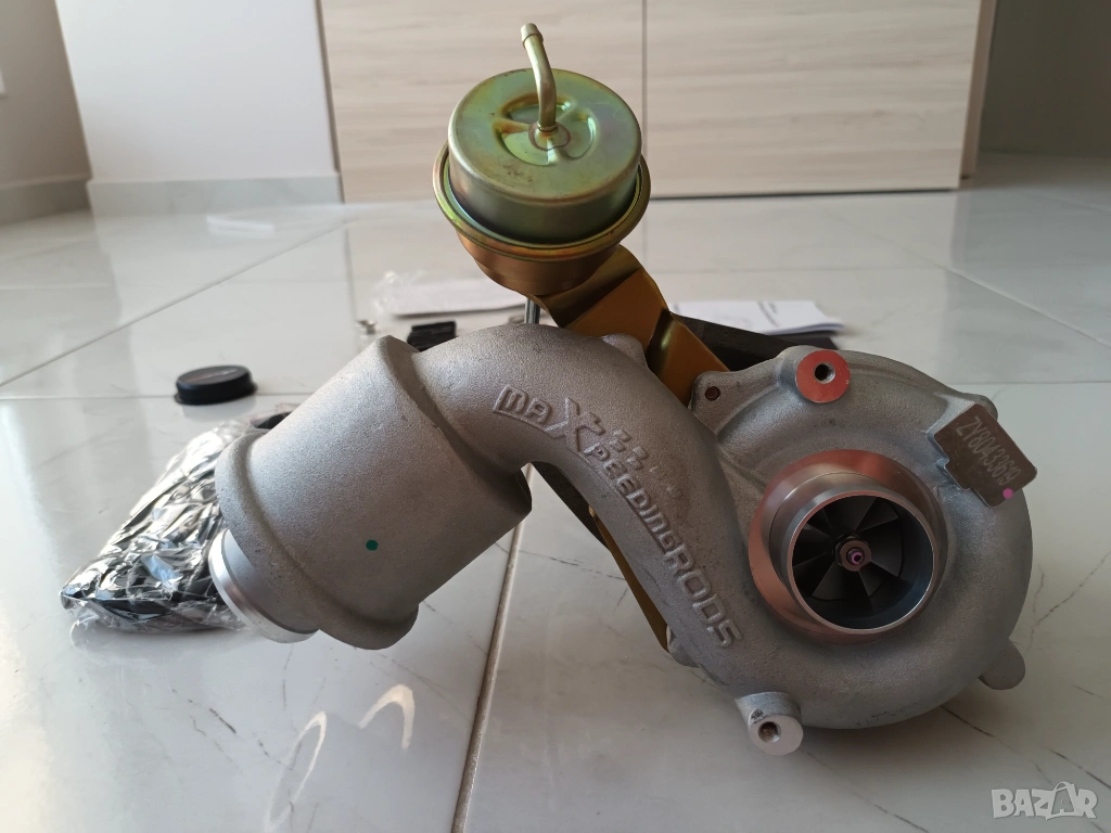 Продавам нова турбина K03s + гарнитури комплект за Ауди А3 1.8Т 180к.с., Голф 4 1.8Т 180к.с., ТТ и други от VAG групата. За напречен мотор. Става и за заместител на по-слабата к03 от 150к.с. с цел повишаване на мощността, тъй-като фланците на изпускателния колектор, даунпайпа, охлаждането и мазането са еднакви.